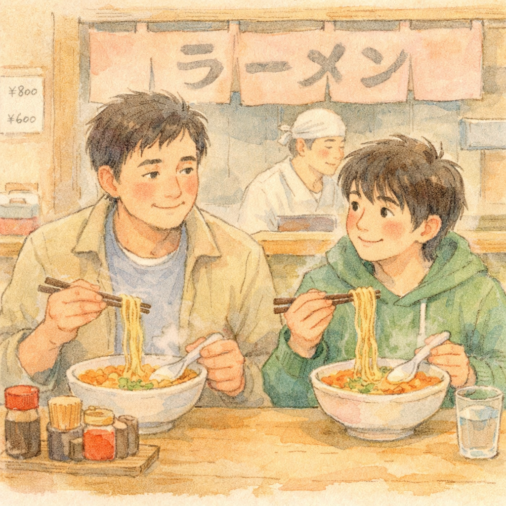 先日、二人でラーメンを食べに行きました。 仕事の話や、趣味のバイクのパーツの話をする。 なんてことない、男同士の会話です。