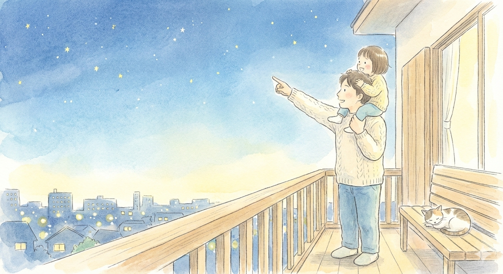 ある夜、私は長男を抱いてベランダに出ました。 夜風に当たりながら、なんとなく夜空を見上げたんです。