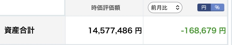 - 口座2:14,577,486円(前月比 -168,679円)