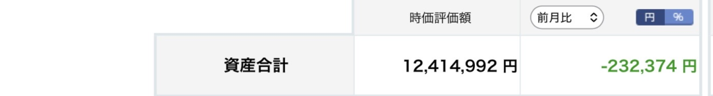 - 口座1:12,414,992円(前月比 -232,374円)