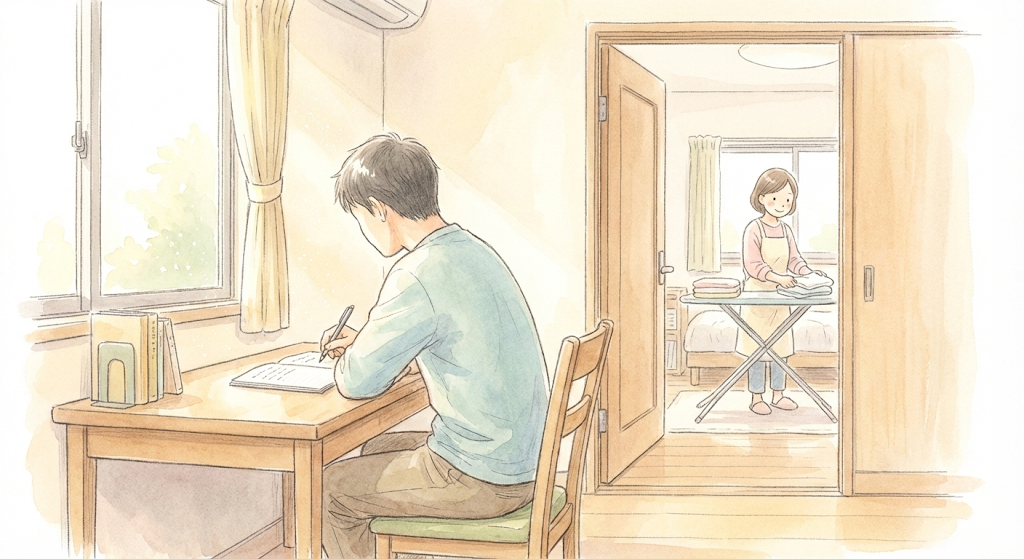 バタバタと準備をして、玄関に向かう。 そこで交わされる、短い言葉。